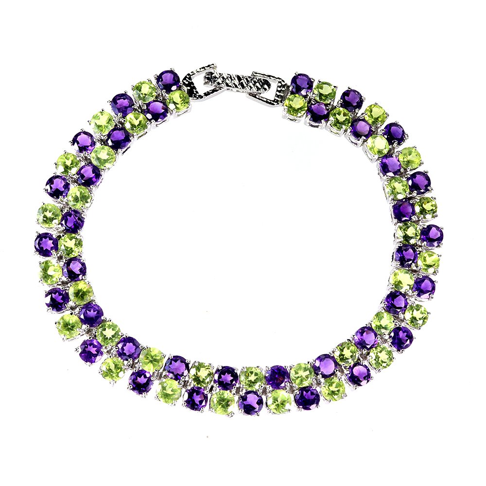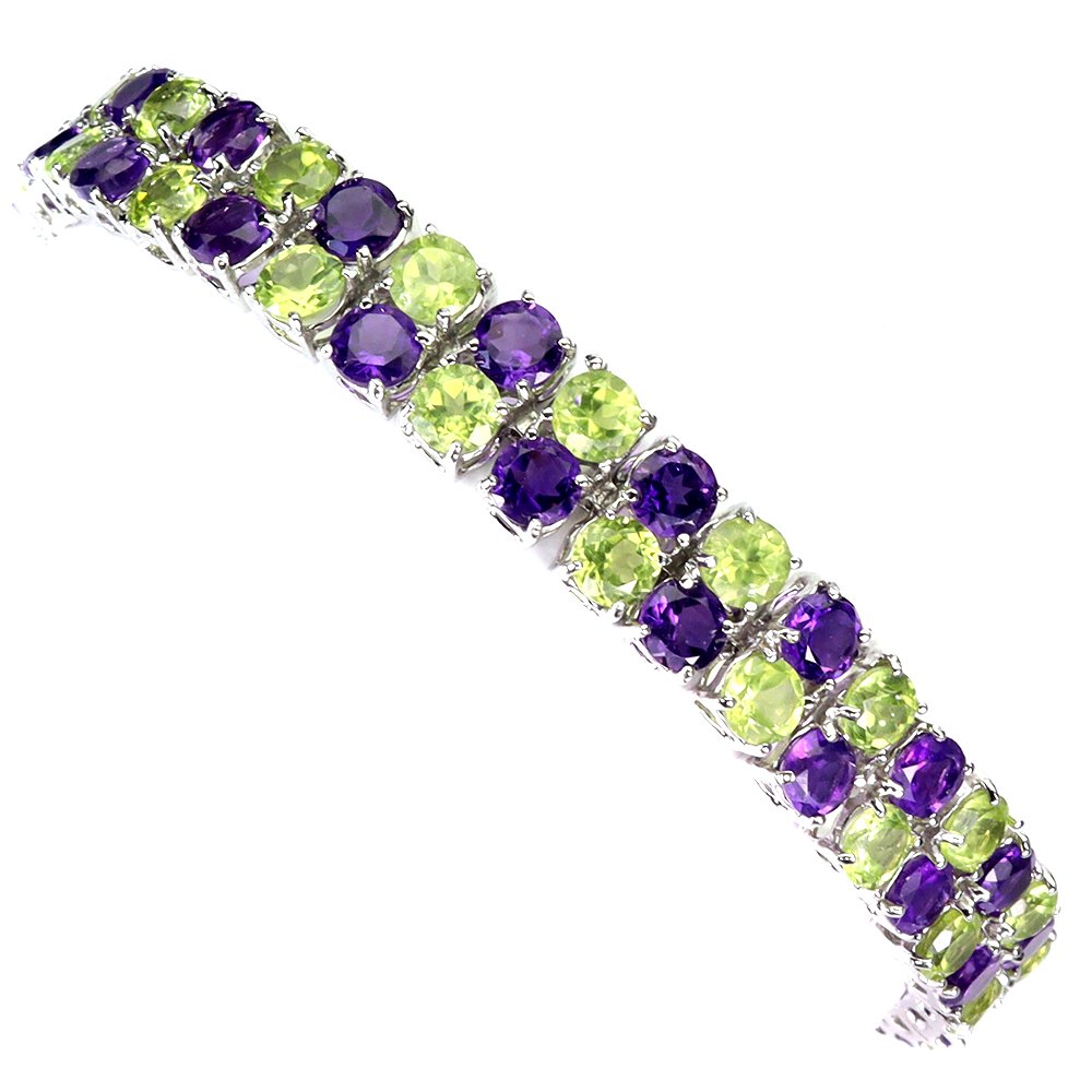 Bracelet in 14K White Gold Plated 925 Sterling Silver with Natural Amethysts and Peridots.