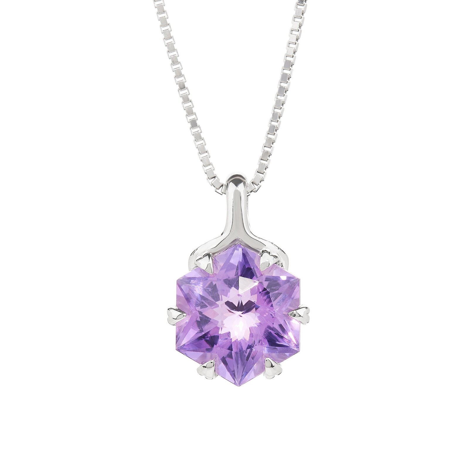 Pendant in Platinum Plated 925 Sterling Silver with Natural Amethyst.