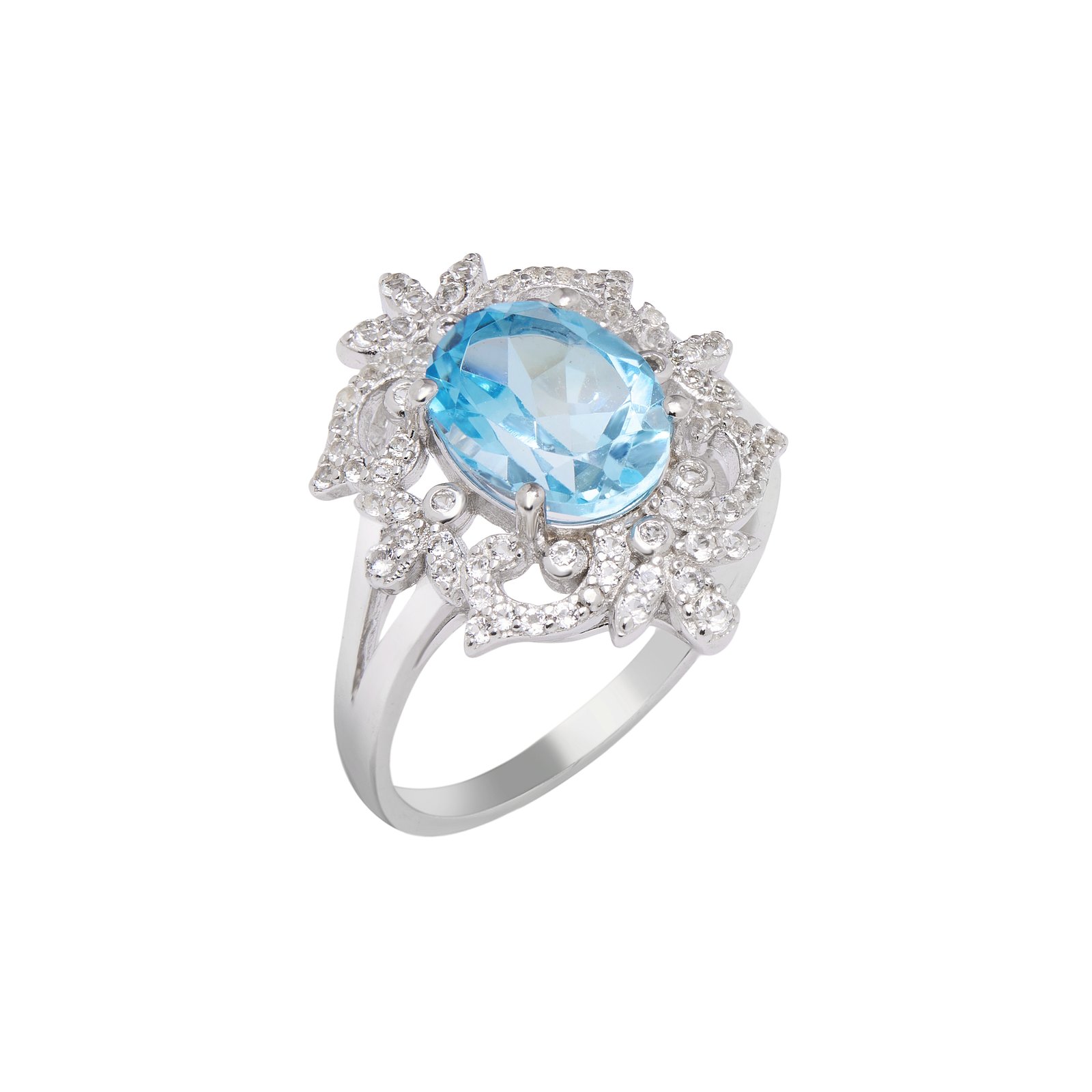 Ring in 14K White Gold Plated 925 Sterling Silver with Natural Topazes.